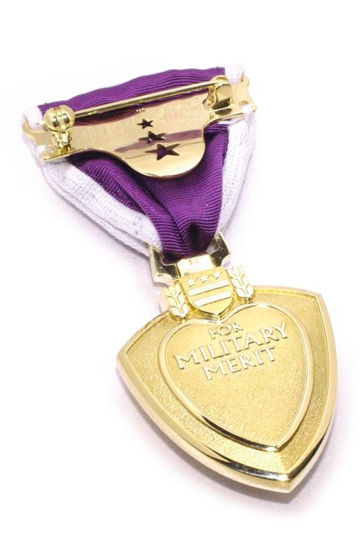 The Purple Heart Jewel (PHJ) is made out of 52 grams massive 18 karat gold. Additional 29 diamonds are set, which represent the day of liberation of Dachau, April 29th 1945.